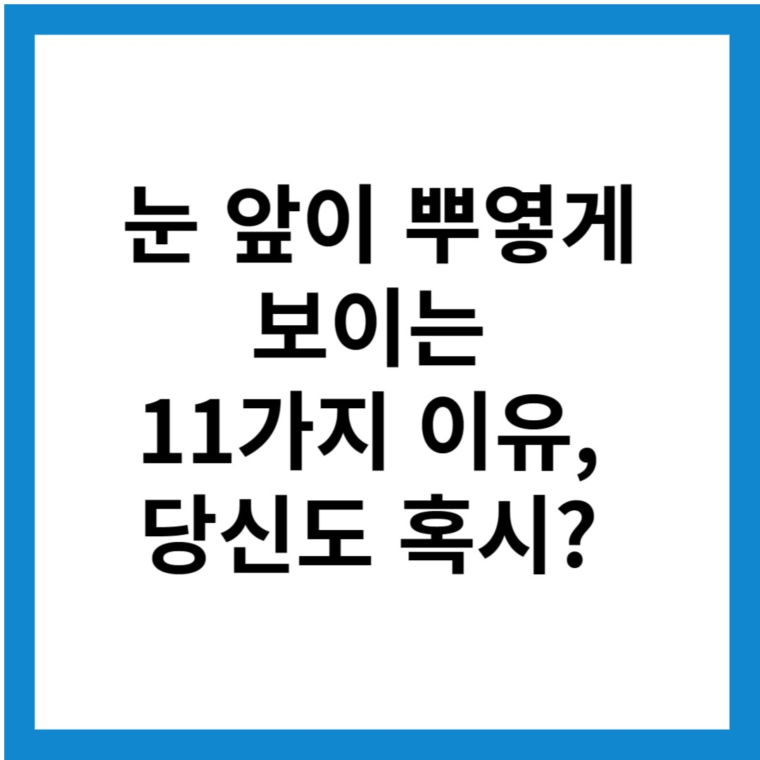 눈앞이 뿌옇게 보이는 증상이 계속되면 반드시 안과 전문의와 상담하여 도움을 받으시길 바라겠습니다.