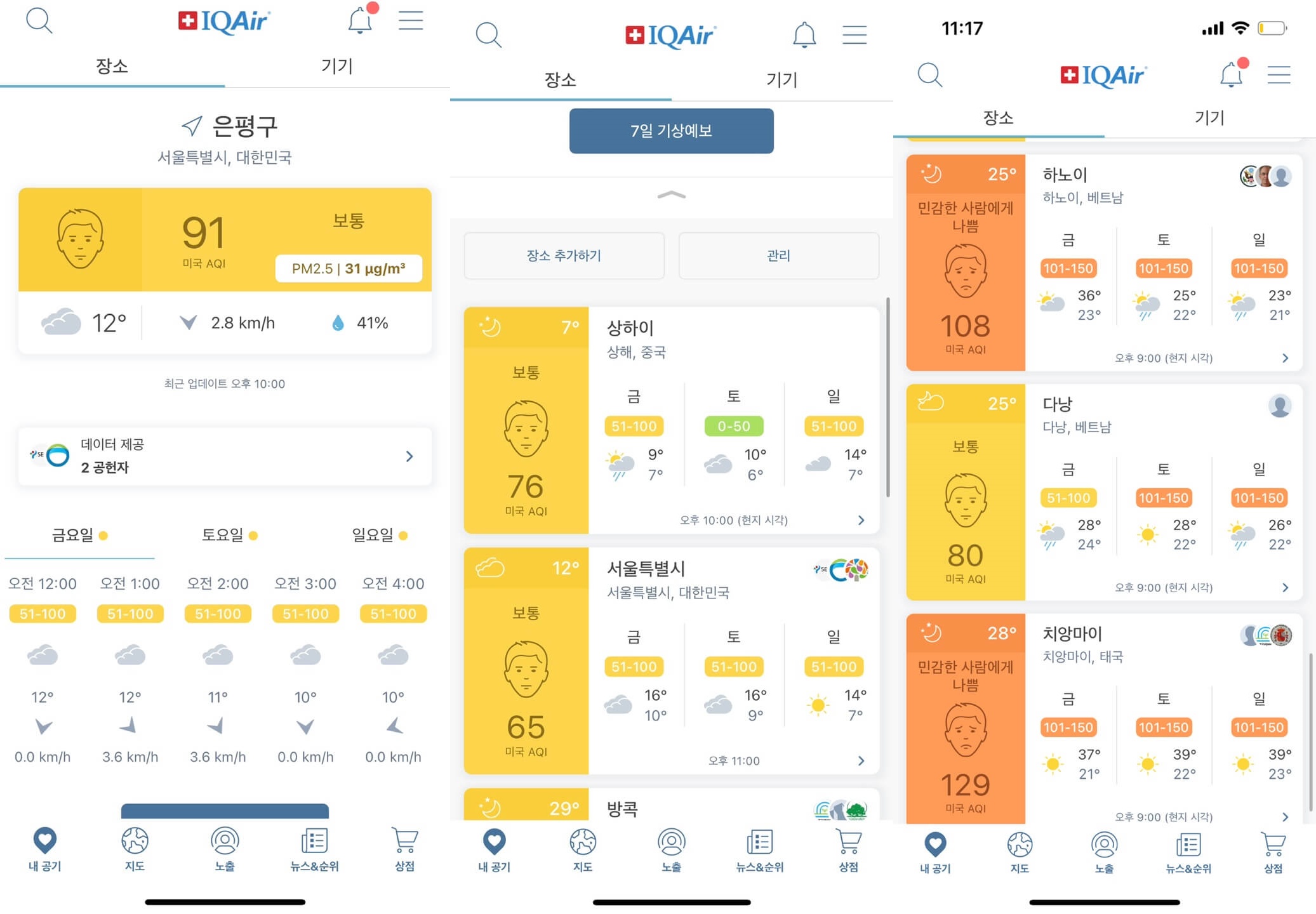 가끔 도시가 검색이 안될 때가 있지만, 현지에 가면 내 위치를 기준으로 가장 가까운 관측소 정보를 받아오기 때문에 위치를 잡아서 이용하시면 됩니다.
