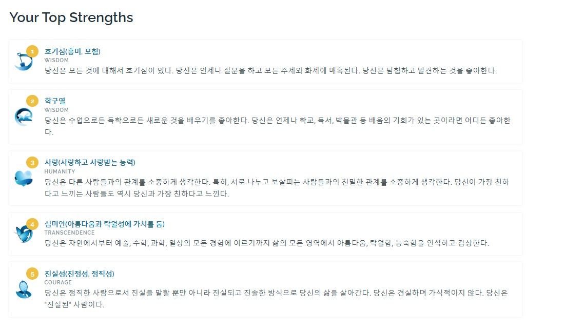 VIA 강점검사를 통해 얻을 수 있는 것?